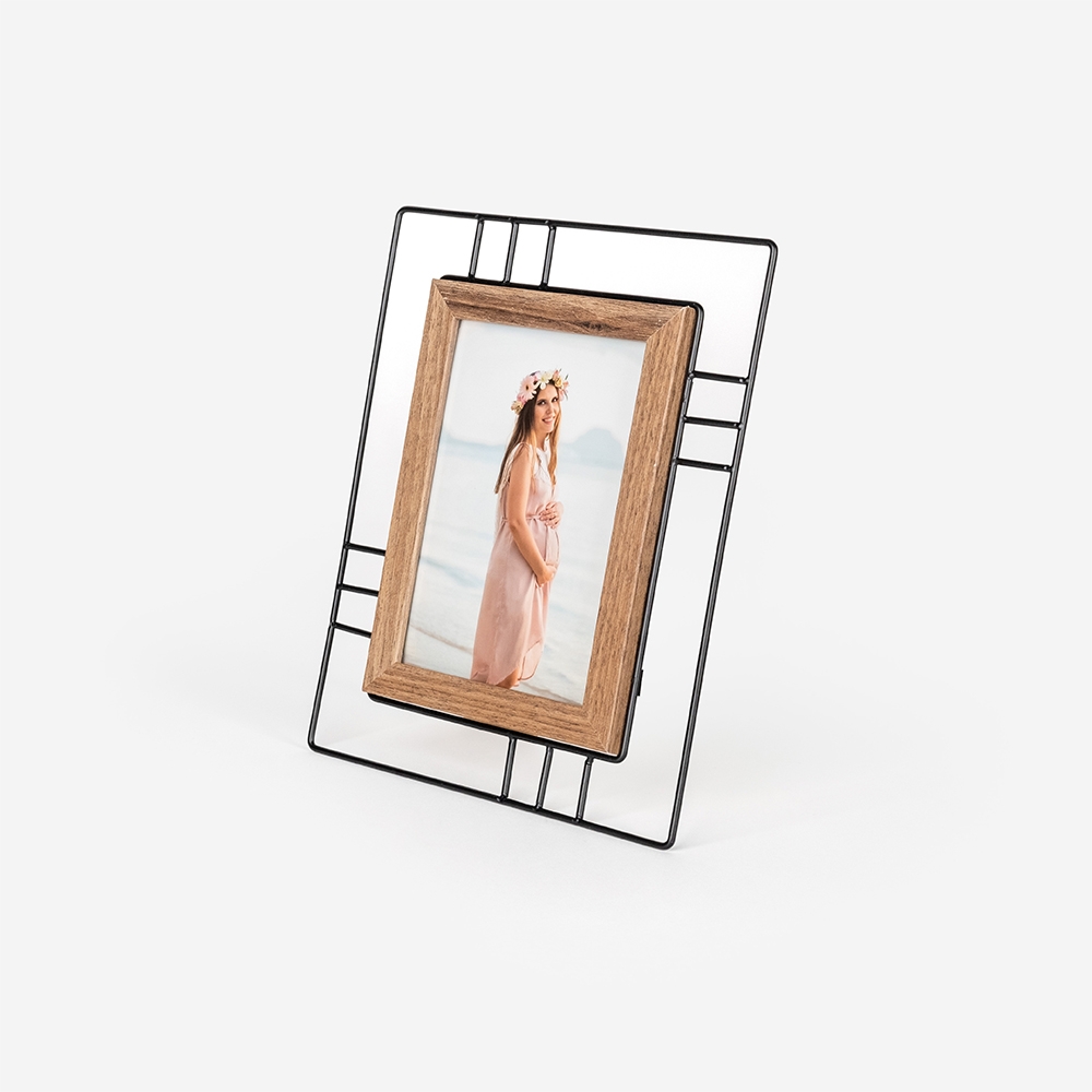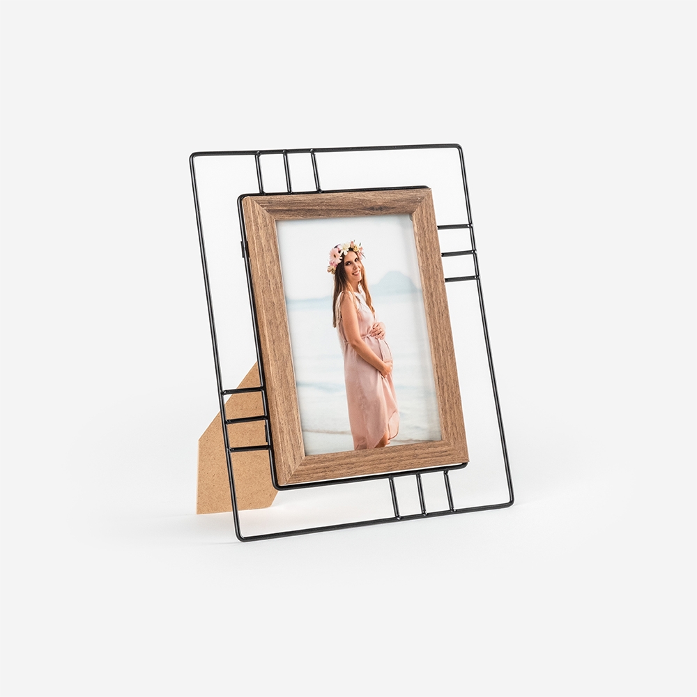Moldura de alta qualidade, fabricado em metal com um apontamento em MDF, garantindo durabilidade e um acabamento perfeito para destacar as tuas fotos.